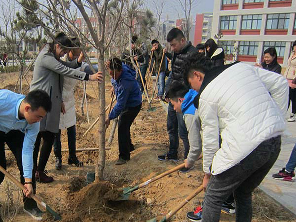 3月5日,经营管理学院的负责人及全体辅导员带领近百名学生在滨海校区开展了植树活动。