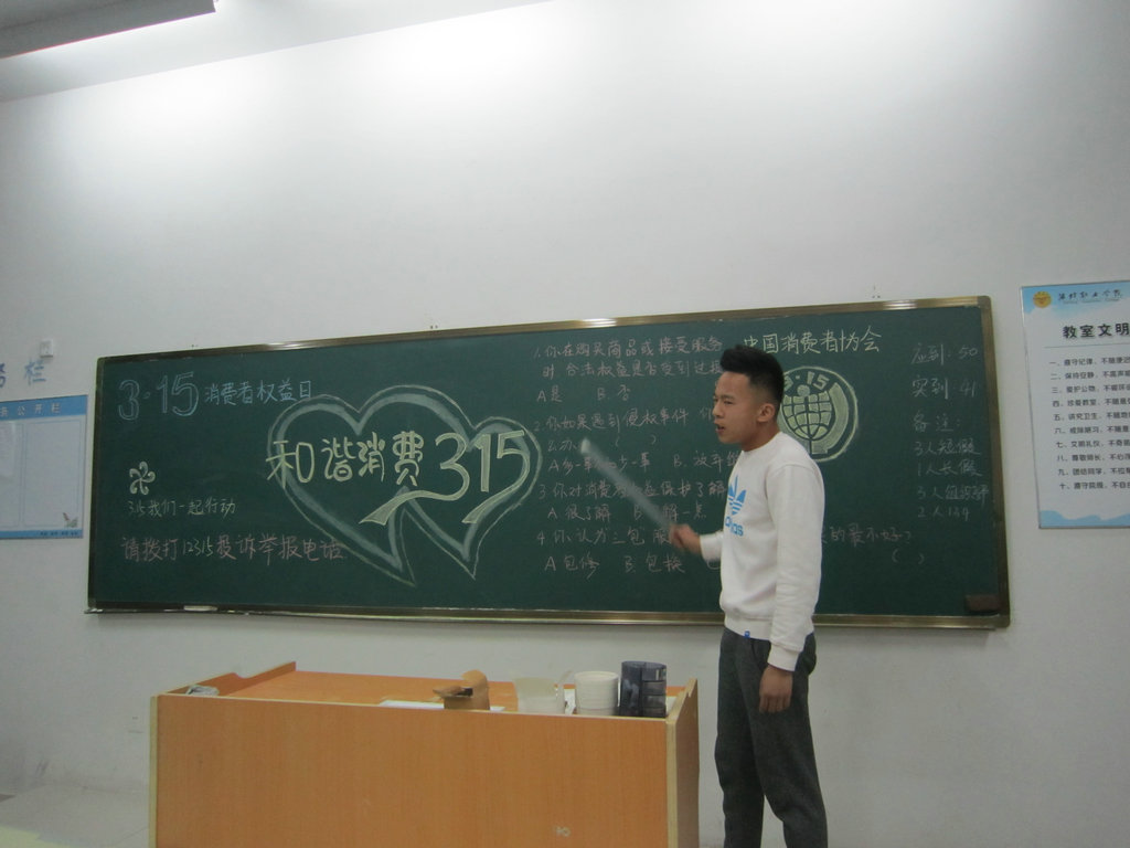 15至16日,正值双休日,该院组织学生干部,进街道、社区进行了消费者权益调查问卷,通过各种形式,向人们宣传消费权益的相关知识。17-18日举行了消费者权益主题班会,同学们讲述了自己在买卖的过程中遇到的纠纷问题,并对消费者权益维护提出了自己的见解。