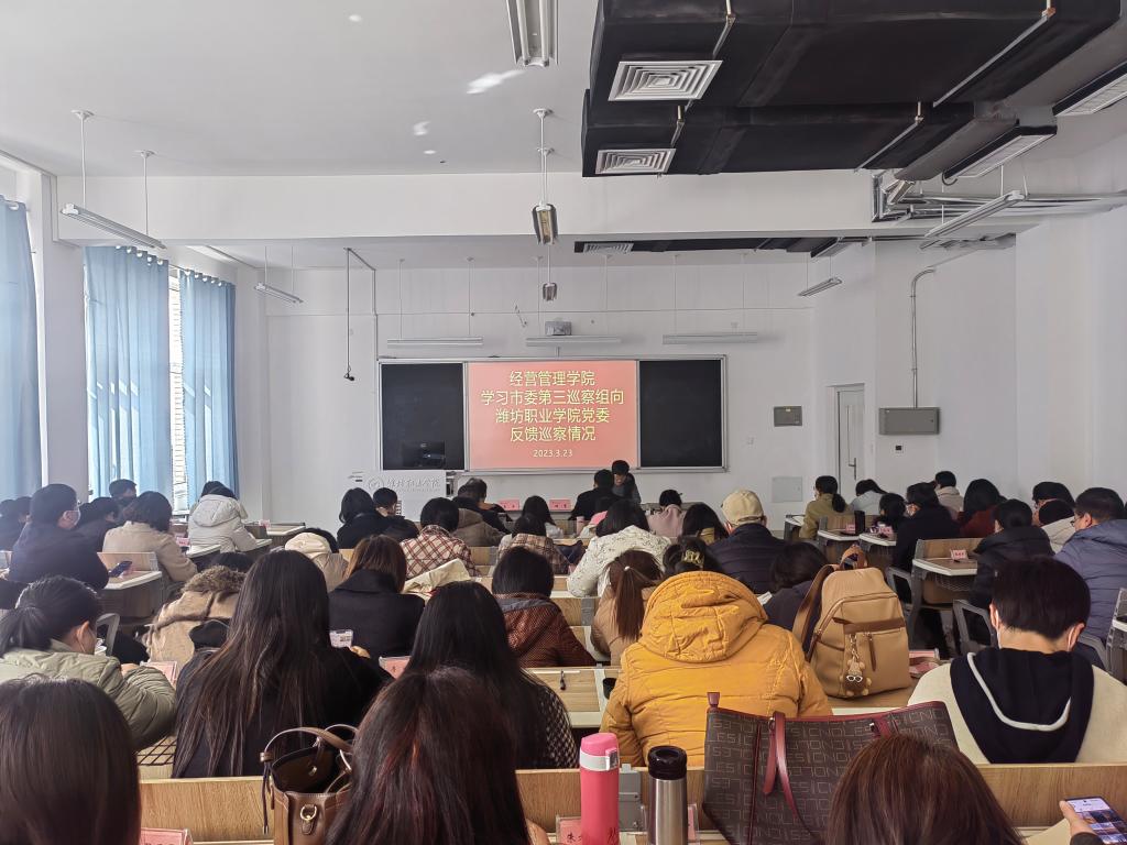 会上,经营管理学院主要负责同志首先就市委第三巡察组向潍坊职业学院党委反馈巡察情况报告向全体教师进行了全文宣讲,并对巡察组发现和干部群众反映的一些问题进行了解读。然后,全体教师对陈端梅副市长的讲话进行了学习。经营管理学院主要负责同志对全体教师提出了两点要求:一是,对照巡视组提出的问题进行自省,存在差距的,抓紧补齐短板,需持久用力的,细化阶段性措施扎实推进,突出精准整改、立行立改,举一反三、标本兼治,切实把整改措施抓紧抓实抓到位。二是,牢牢把握立德树人根本任务,坚持全面从严治党,聚焦基层党组织建设,为推动学院高质量发展提供有力保障。(王丹萍供稿)