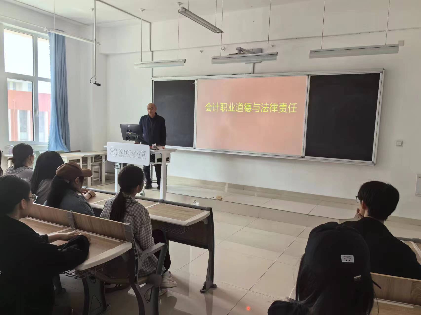 经营管理学院于5月11日成功举办了一场主题为“会计职业道德与法律责任”的专题讲座。本次讲座特邀潍坊职业学院的产业教授李建军,为大数据与会计、金融服务与管理专业的学生深入解读会计职业的道德规范和法律责任。
