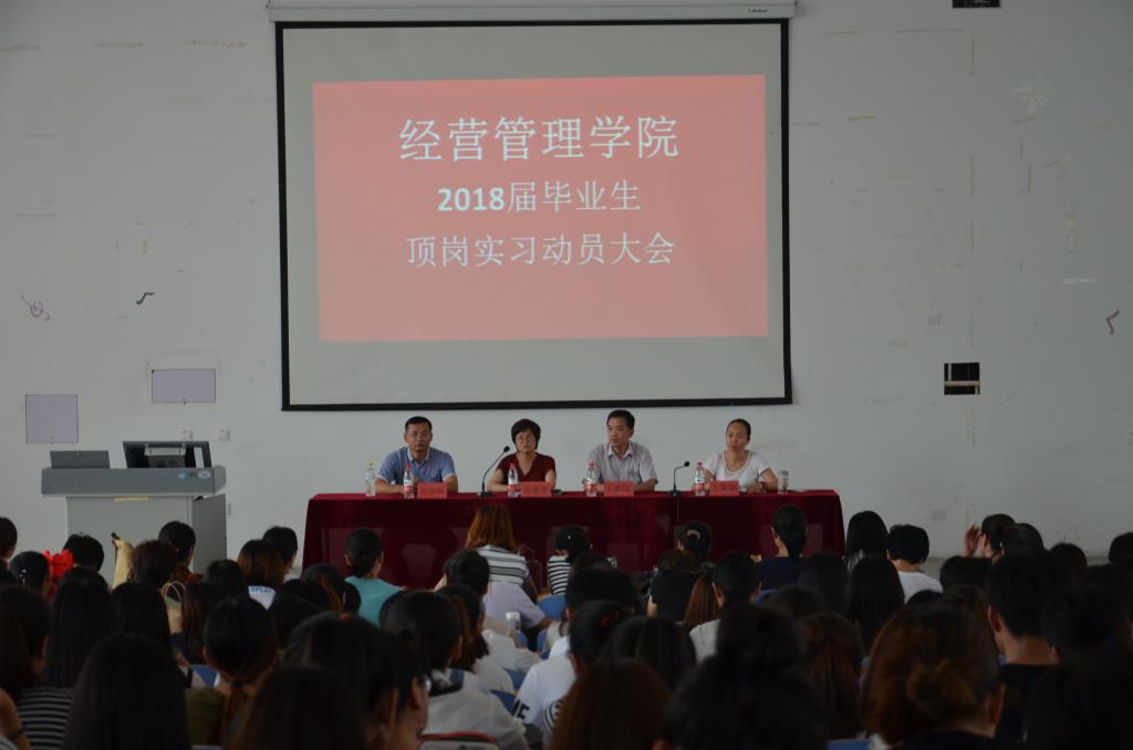 6月30日下午,经营管理学院负责人、顶岗实习指导老师、相关班主任及学生代表在惠泽1-B117召开顶岗实习动员大会。对顶岗实习做出了具体明确要求,全力做好学生的顶岗实习工作。