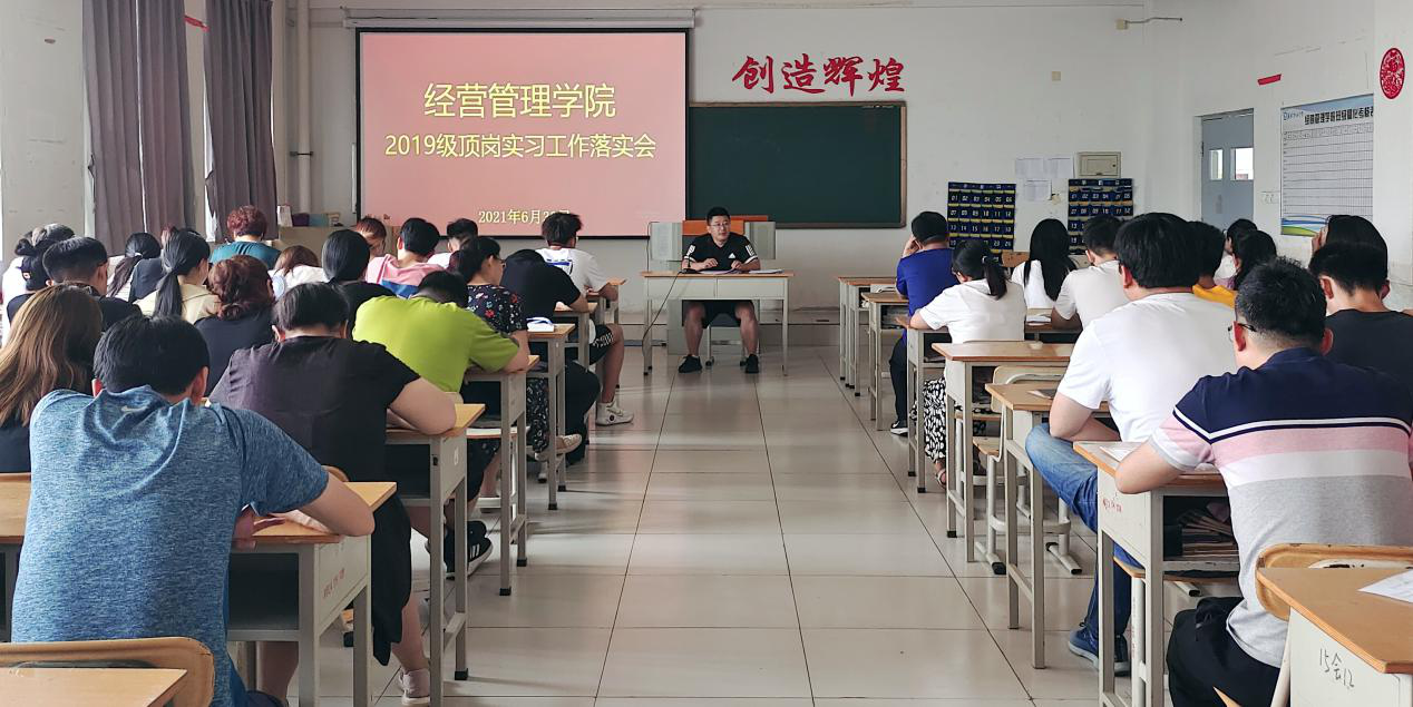 为贯彻落实学校教学任务和就业工作精神,切实做好学院2019级顶岗实习工作,加强学生对顶岗实习的认识和了解,使学生明确顶岗实习的各项要求,经营管理学院于6月30日在惠泽1号楼A312教室召开了“2019级顶岗实习工作”落实会。