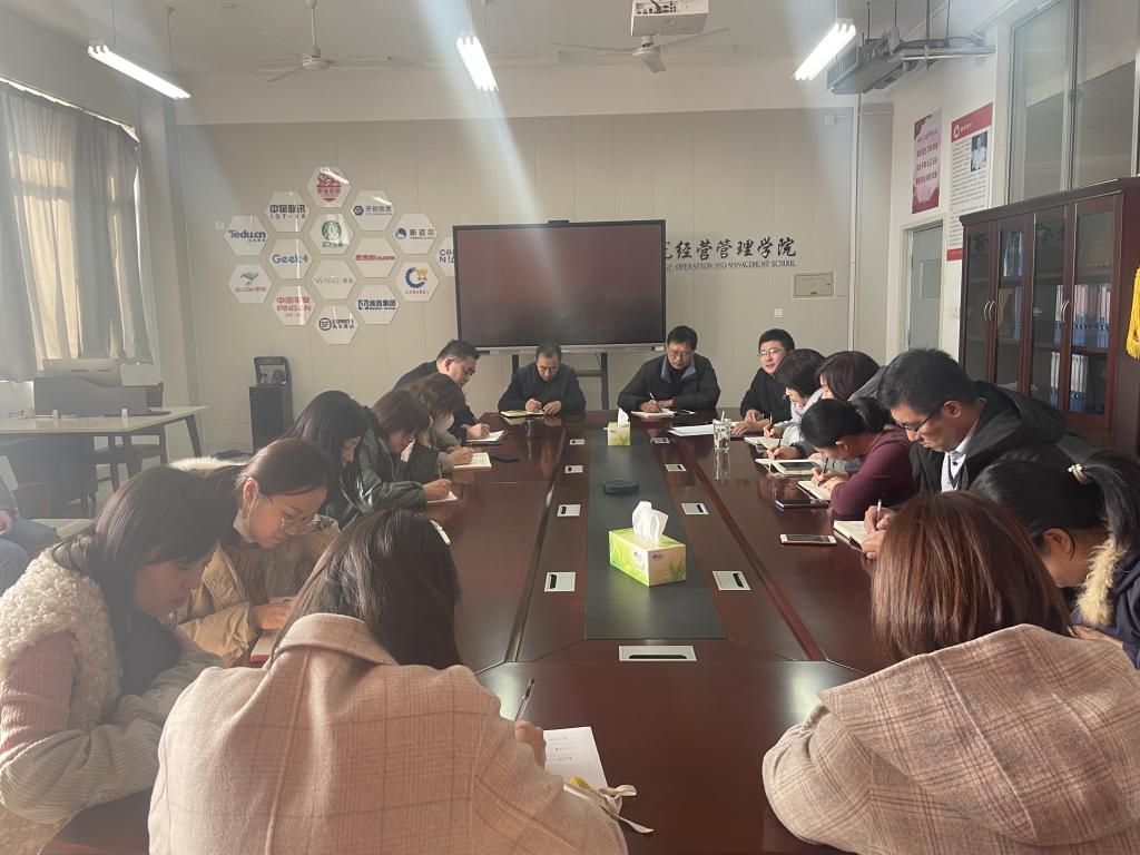 经营管理学院团总支主要负责同志对期末学生工作进行了详细部署,分管学生副院长从诚信考试教育、冬季公寓安全、疫情防控、学生就业创业等方面作了进一步强调。