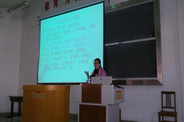 报告由潍坊附属医院中医科刘莉莉老师主讲。刘老师曾于内蒙古医学院大专部任教,有丰富的医学知识和教育管理经验,多年来刘老师一直致力于中医推广,她结合女生生理、心理特点,围绕衣、食、住、行等方面,从疾病的出现到疾病的防御,从病情的内因到病情的外因,还就如何从医学角度科学的做好自我生理保健做了详细的讲解,刘老师告诉同学们,青春期是女孩子一生最重要的时期,所有女生要学会珍惜自己的身体,珍惜花样年华,做好自己的护花使者,她说:“一个自尊、自爱、自强、有教养的女性,势必会赢得别人的尊重,我们要努力成为这样的女性。”。