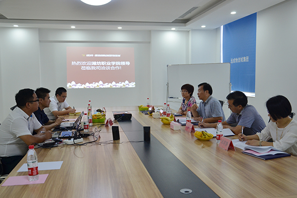 9月9日,学院副院长贺志强带领科技处和经营管理学院负责人到远成物流公司考察,洽谈校企合作有关事宜。远成集团上海总部及潍坊远成国际智慧物流城的相关负责人参加了洽谈。