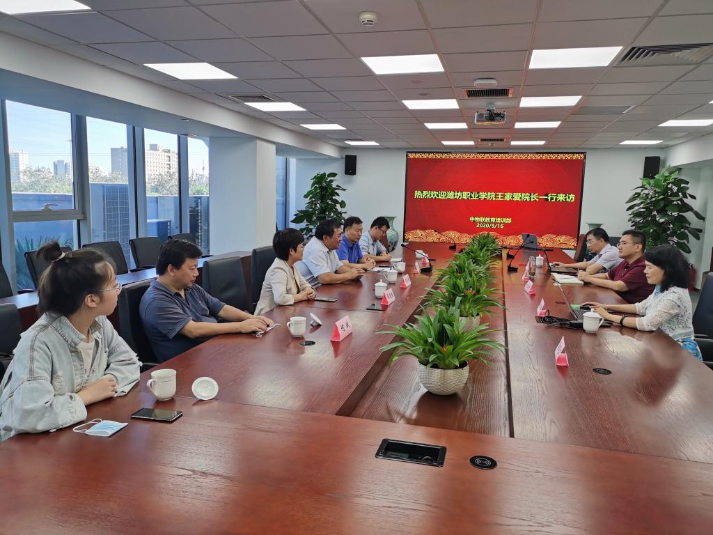 在中国物流与采购联合会,全国物流职业教育教学指导委员会主任、中国物流与采购联合会副会长任豪祥,教育部高等学校物流管理与工程类专业教学指导委员会秘书长、全国物流职业教育教学指导委员会秘书长、中国物流与采购联合会教育培训部主任郭肇明,中国物流与采购联合会教育培训部副主任李俊峰,中国物流与采购联合会物流与供应链教育研究院院长、中国物流与采购联合会教育培训部副主任张晓梅接待了到访者。会上,王家爱介绍了学院的基本情况、近几年优质校建设和双高校建设中取得的成绩以及下一步的工作打算。贺志强介绍了学院产教融合、校企合作的基本情况,阐述了学院采取一个体制六种路径的方式在产教融合、校企合作开展的具体工作和获得的成果。郭肇明在发言中表示,潍坊职业学院文化历史悠久,近几年发展上升速度快,迈入了国家高职院校第一方阵,对我院在教育部五年行动计划、双高/职教高地建设、产教融合、技能大赛等方面取得的成绩表示祝贺,并从机构简介、体系建设、培训认证、物流教育、1+X试点、国际合作6个方面介绍了中国物流与采购联合会的情况。双方就中国开放大学物流学院建设、技能证书培训、专业建设、成果培育等合作事宜达成了共识。下一步中物联将密切关注我院的发展动态,在专业建设、产教融合、校企合作、高层次人才引进等方面进行指导。