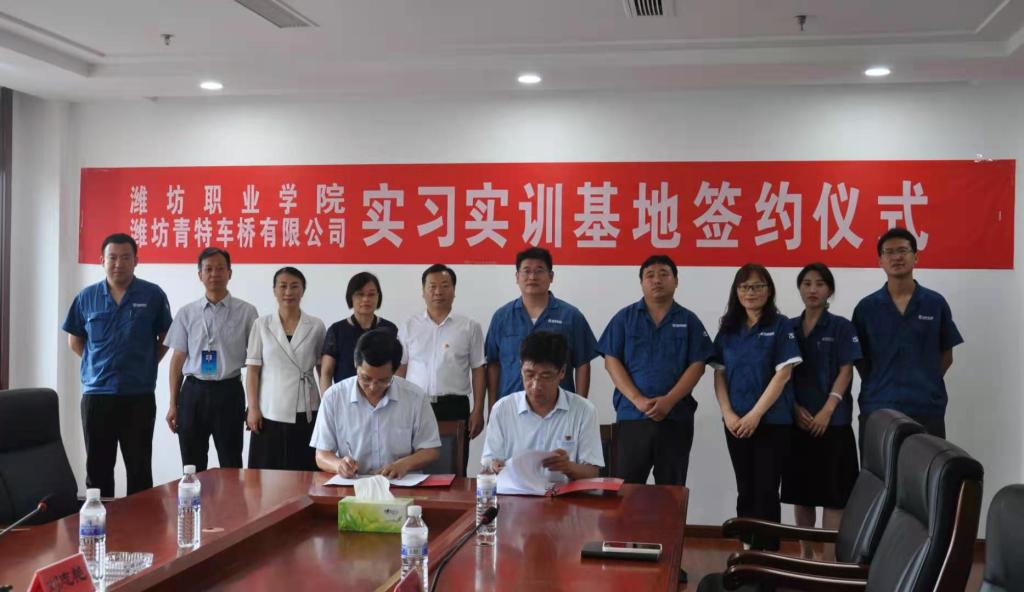 为不断提高联系服务企业工作水平,做实联系服务企业活动,促进校企业合作共赢,7月6日,学校副校长贺志强带领监察审计处、教师工作部、科技处、汽车工程学院主要负责人,到学校联系服务企业举行校企合作签约,并为潍坊青特车桥有限公司“潍坊职业学院实习实训基地”、诸城大舜汽车科技有限公司“潍坊职业学院教师工作站”揭牌。