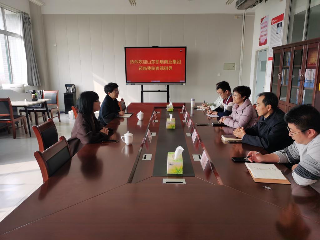 11月17日上午,山东凯瑞商业集团人力资源总监胡嘉一行到经营管理学院洽谈校企合作事宜,经营管理学院主要负责人和相关科室负责人接待了到访人员。
