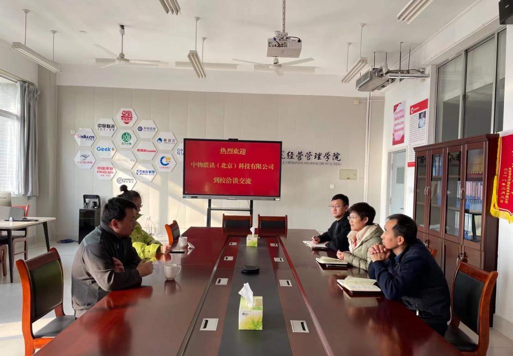 洽谈期间,何斌介绍了中物联讯(北京)科技有限公司的基本情况、校企合作模式以及人才需求情况。经营管理学院主要负责人介绍了经营管理学院专业设置、师资队伍、教学水平以及校企合作发展成果,对校企双方的合作方式及合作项目提出了建议。