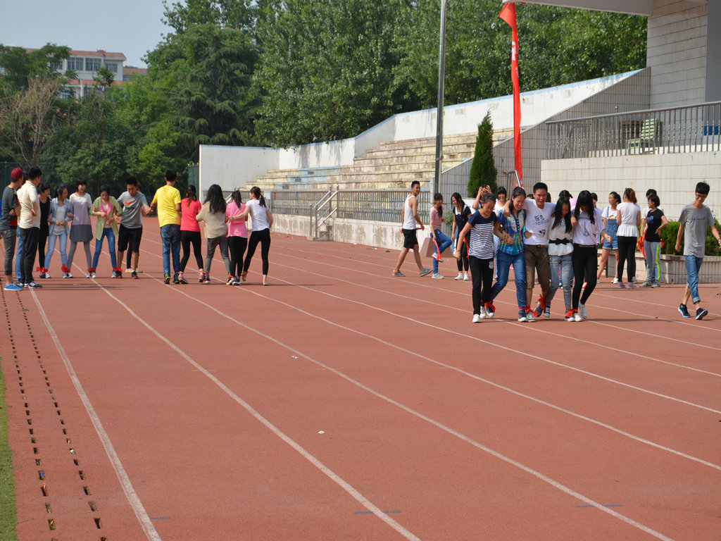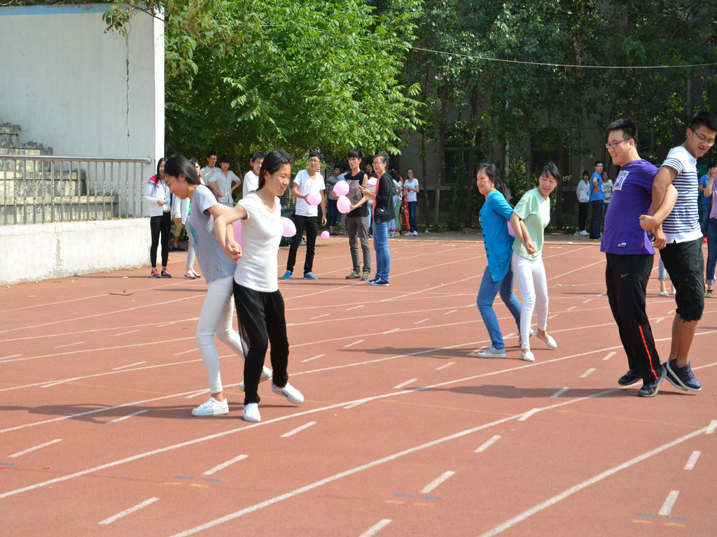 本次活动主题为“友爱、互助、和谐、快乐”,共有两项比赛:齐心协力绑腿跑接力赛和背靠背默契夹球跑。要求男女同学混合组队参加,和传统的体育竞技比赛不同,不以速度快为唯一获胜标准。所设奖项有最和谐奖、最励志奖、最默契奖、最幽默奖等。共有32个班组队参加。选手们不惧炎热,赛场上互帮互助,你追我赶,气氛热烈欢快。