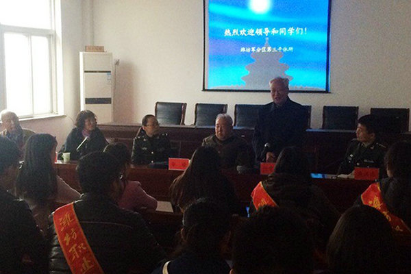 与潍坊军分区第三干休所老一辈革命战斗英雄进行交流,聆听着他们在艰苦的战争年代,不怕苦,不怕死,树立坚定的意志、信念,战胜敌人的英雄事迹。同学们深受感染,懂得了今天生长在和平年代,享受着无忧无虑的生活,是无数革命先烈用鲜血和生命换来的,得之不易,为之珍惜,同学们表示将充分利用宝贵的时间,努力学习,掌握知识,为建设新中国,实现“中国梦”做出自己最大的贡献。军分区第三干休所将成为经营管理学院大学生思想教育的培训基地,同学们在为军区第三干休所提供志愿服务的同时,将长期接受思想及心灵的洗涤,使自己成长为有理想信念、有道德情操、有扎实学识、有仁爱之心的“四有”青年。(王红玉供稿)