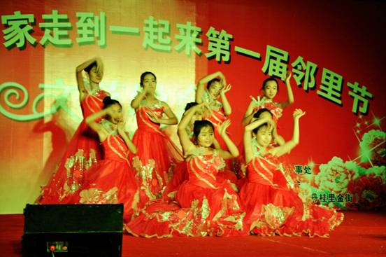 晚会在学生青春洋溢的《美丽心情》开场舞中拉开帷幕;社区大叔的歌声、大妈的舞蹈让大家领略到了老年人的激情;大学生举止高雅的《礼仪操》更是一场视觉的冲击,赢得掌声阵阵;舞蹈《秀色》,让整个晚会现场沉浸在了欢乐祥和的气氛中。