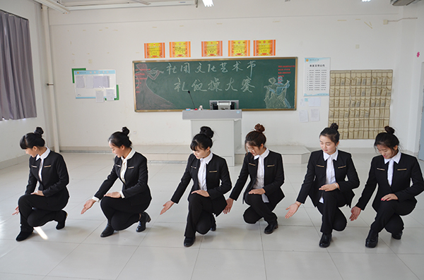 比赛吸引了各二级学院6支代表队参加。比赛采取一次性决赛方式,由指导老师、各二级学院学生负责人现场打分。比赛过程中,各参赛队队员精神饱满,衣衫光彩夺目,动作规范有力,将基本举止站姿、走姿、蹲姿、迎送宾语、鞠躬礼、高中低位手势以礼仪操的形式伴随着音乐进行了全方位标准化展示。端庄的仪态、优雅的举止,演绎着礼仪的魅力,展示出当代大学生青春的激情。