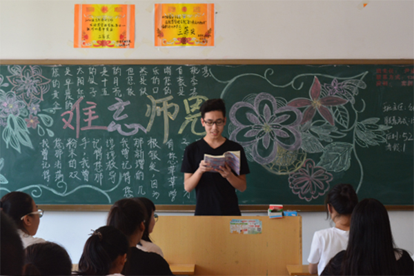 有的班级组织召开教师节主题班会,班主任通过和同学们交流谈心,引导他们常怀感念之情,报国之志,报答母校的教诲,立志成人成才,报效国家;有的班级用深情的诗歌朗诵表达对老师的祝福赞美;有的班级则组织同学们了解老师一天的工作,理解老师工作的辛苦和伟大。(王婷婷供稿)