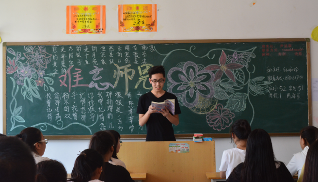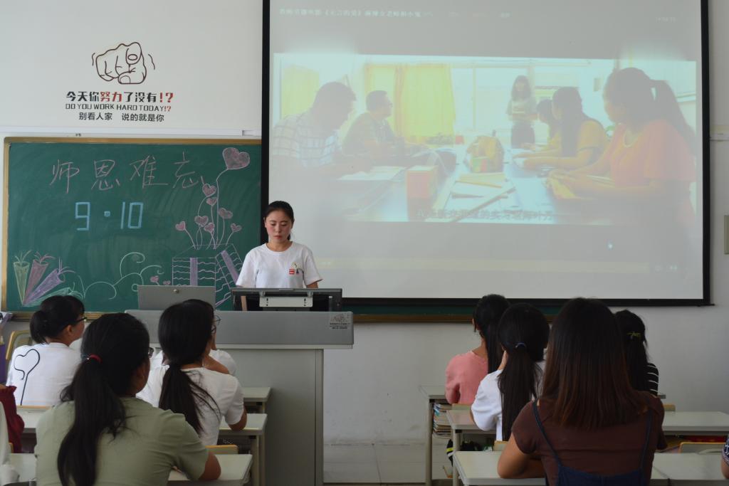 有的班级组织召开教师节主题班会,班主任通过和同学们交流谈心,引导他们常怀感念之情,报国之志,报答母校的教诲,立志成人成才,报效国家;有的班级用深情的诗歌朗诵表达对老师的祝福赞美;有的班级则组织同学们了解老师一天的工作,理解老师工作的辛苦和伟大。(王婷婷供稿)