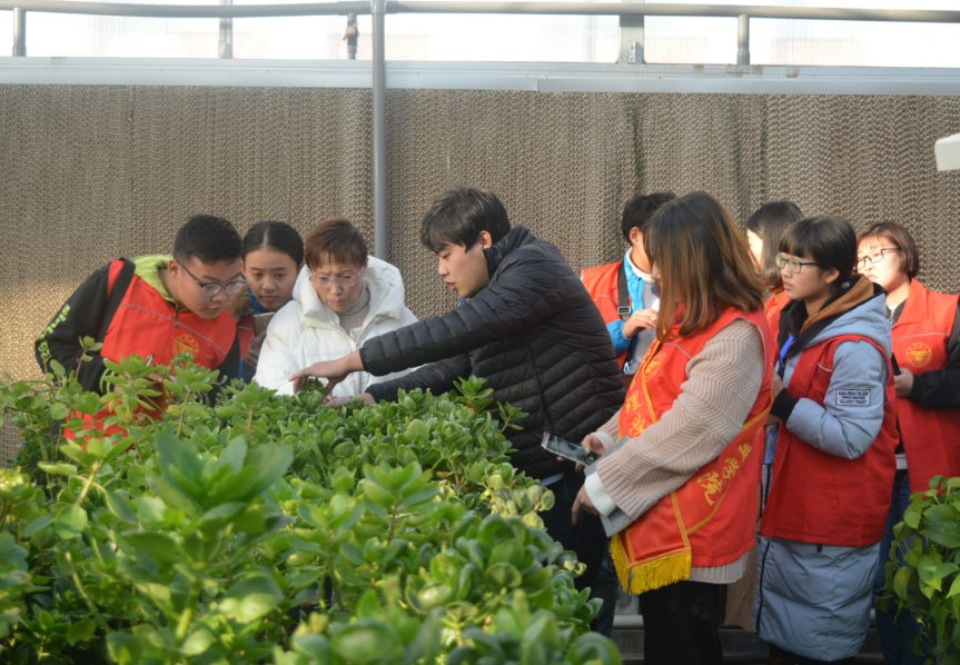 为践行十九大精神,提高社团志愿服务活动质量和专业水平,2017年11月26日,经营管理学院支农社团走进我院温室大棚进行参观学习。