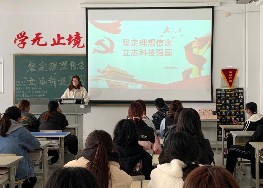 为进一步坚定新时代青年大学生的理想信念,引导学生了解我国科技发展成就,立志为中国快速发展及中国梦的实现贡献力量,献礼建党100周年,3月18日下午,经营管理学院各班级开展了以“坚定理想信念•立志科技强国”为主题的团课。