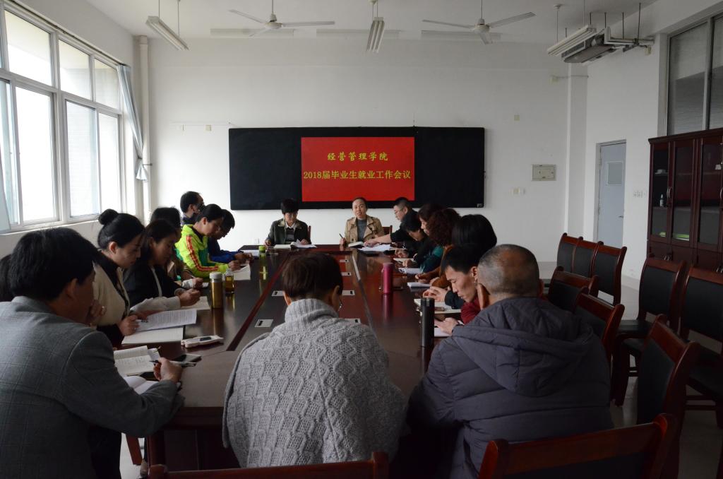 近期,经营管理学院召开了2018届毕业生就业工作推进会,经营管理学院主要负责同志及全体18届毕业班级班主任出席参加了此次会议。