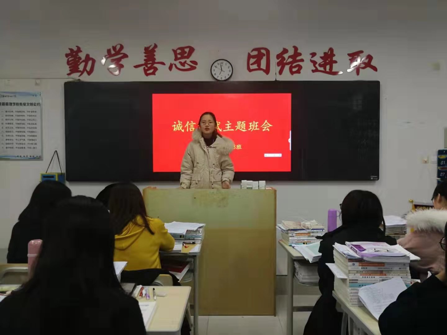 12月30日,经营管理学院各班召开“诚信学习,诚信考试”主题班会。各班班委会结合本班同学特点认真召开本次主题班会,强调了“诚信”的含义,帮助同学们理解“诚信考试”对学生自身发展的意义。明确在期末考试中一定要遵守诚信考试的原则与要求。
