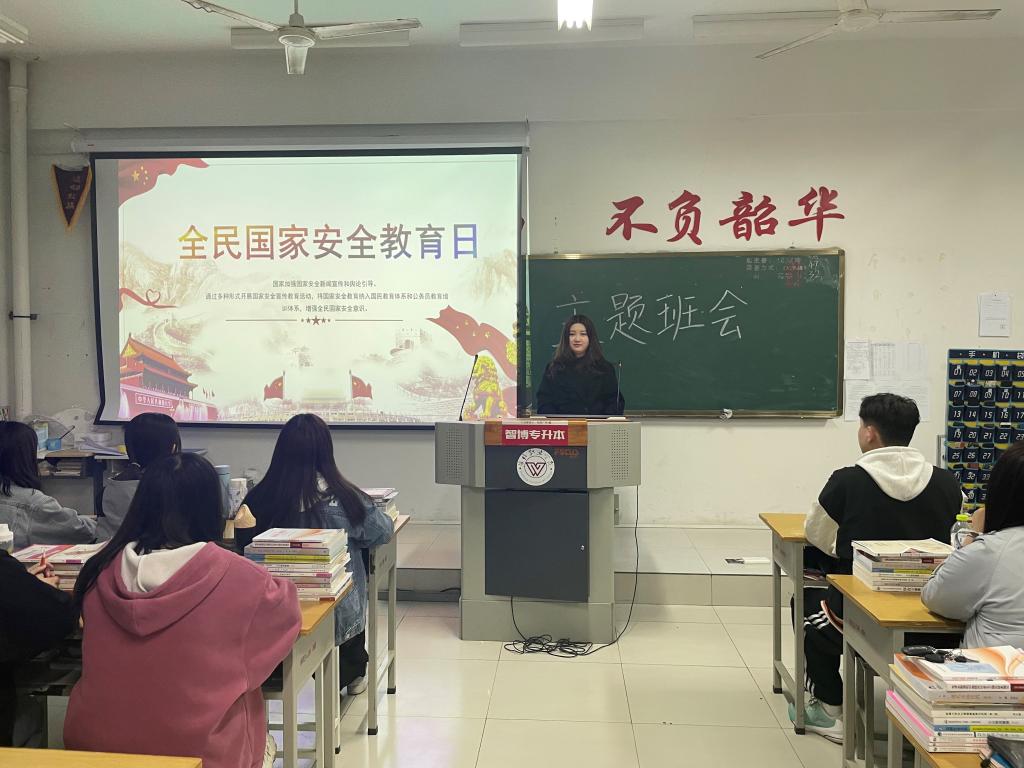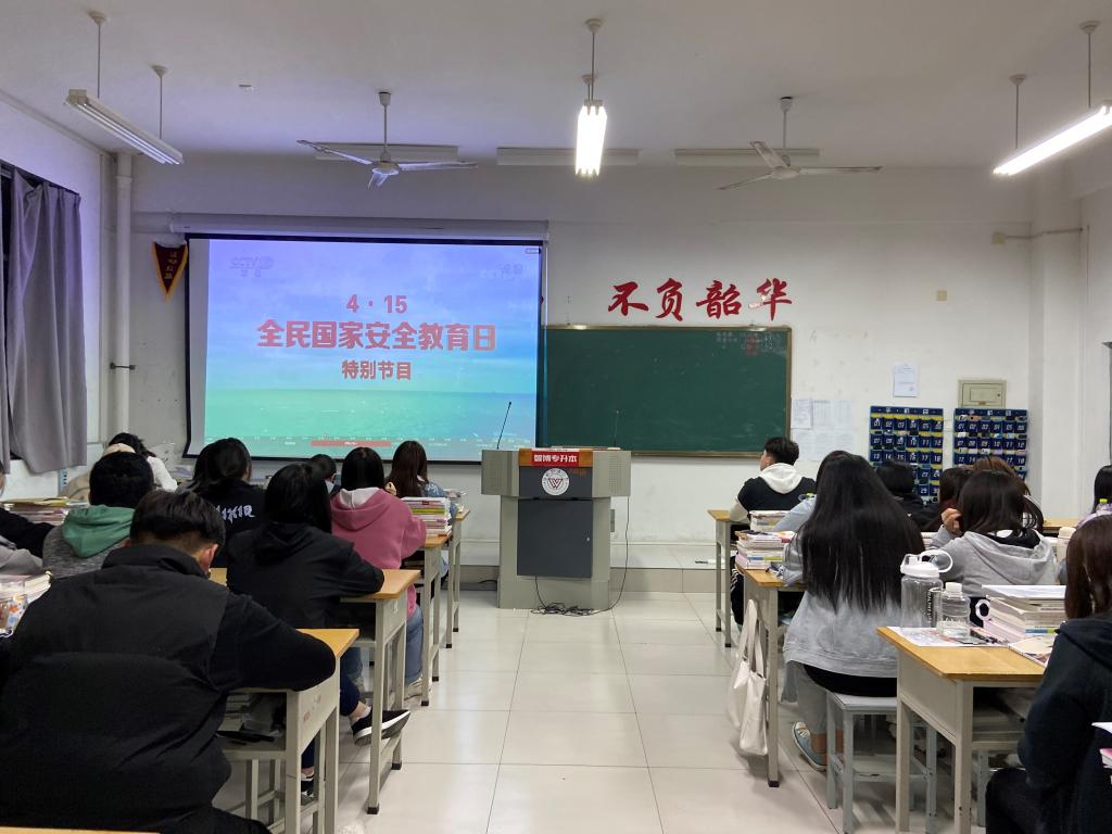 本次教育活动紧扣“践行总体国家安全观,统筹发展和安全,统筹传统安全和非传统安全,营造庆祝建党100周年良好氛围”主题,开展了主题团课、主题班会、集中收看专题宣传片三个系列活动。主题团课上,各班团支书利用PPT等载体,从不同视角、不同领域带领同学们学习“国家安全”的历史意义和时代内涵,并组织研讨交流,提升同学们的国家安全意识。“国家安全人人有责”主题班会上,各班级负责人组织学生学习《国家安全法》《反恐怖主义法》《反间谍法》以及习近平总书记关于总体国家安全观的重要论述,并列举出了各种危害国家安全的“红线”行为,帮助同学们了解总体国家安全观相关知识,掌握一定的国家安全知识和技能,自觉维护国家安全。组织师生集中收看了《护航之道——总体国家安全观纵横》专题宣传片。通过一系列活动,同学们纷纷表示,作为新时代大学生应提高认识,增强本领,为维护国家和平、安全、稳定、统一贡献青春力量。