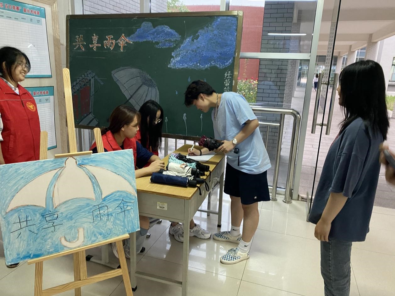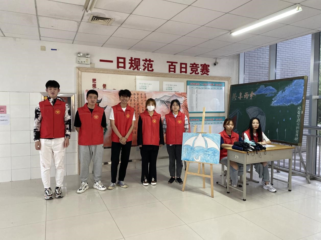 为了弘扬和践行志愿者的志愿服务、甘于奉献的精神,为给广大师生提供便利,给雨中的校园带来暖意,5月26日下午,经营管理学院团总支在惠泽1号楼开展“爱心共享伞,温馨无极限”志愿服务活动。
