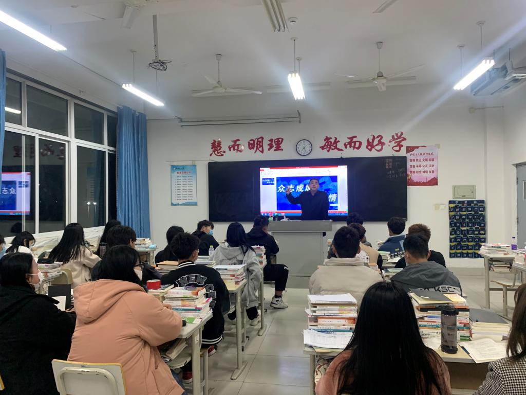 会上,班主任主要围绕疫情防控、思想政治教育、学业管理、心理健康四个方面展开。在疫情防控方面,班主任向同学们强调了当前高校疫情防控的难度和形势,解释和说明了晨午晚检制度、请销假制度、消毒通风规定、核酸检测等学院疫情防控的相关管理制度和措施,要求大家严格遵守学院的各项规定,积极配合学院的疫情防控工作,做好自身防护;思想政治教育方面,班主任通过挖掘疫情防控期间涌现出的先进典型、英雄人物和典型事迹,加强学生的思想教育与引领,要求同学们不信谣、不传谣、不在网络上发布不当言论,引导同学们理性爱国、学习强国;学业管理方面,学院现在实施线上线下相结合的授课模式,在线上听课期间,大家应做到不迟到、不旷课,不要荒废学习,加强自我学习和管理;在心理健康方面,班主任介绍了疫情防控常态化下大学生自我心理调适和压力管理方法,引导学生培养理性平和健康心态。