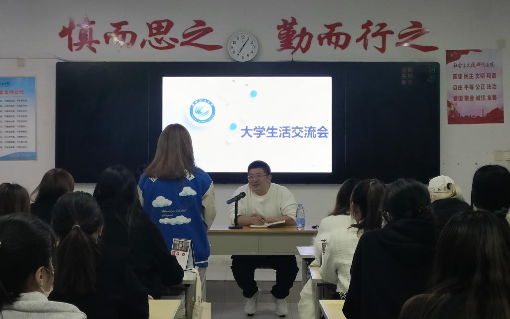 此次系列活动通过师生面对面交流的形式,帮助同学们明确学习目标,引导和鼓励同学们志存高远、合理规划大学生活,做有理想、有追求、有担当、有作为、有品质、有修养的时代新人。(李婷供稿)