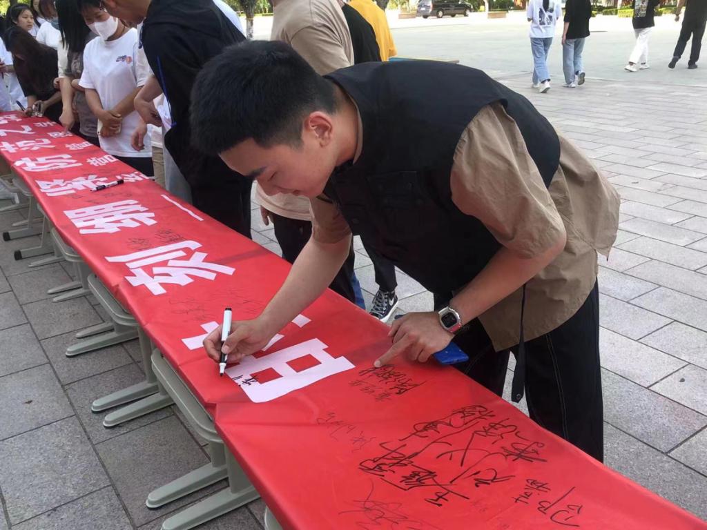 首先,辅导员老师向同学们介绍,近年来电讯网络诈骗活动猖獗,各种诈骗手段令人防不胜防,我国利用电话、网络等科技手段实施诈骗的案件更是呈高发态势,所以预防电信网络诈骗刻不容缓。辅导员老师呼吁同学们要树立防电信网络诈骗意识,积极宣传防电信网络诈骗安全知识。在老师的倡议下,同学们踊跃在条幅上签下名字并明确表达出了对防电信网络诈骗的决心。