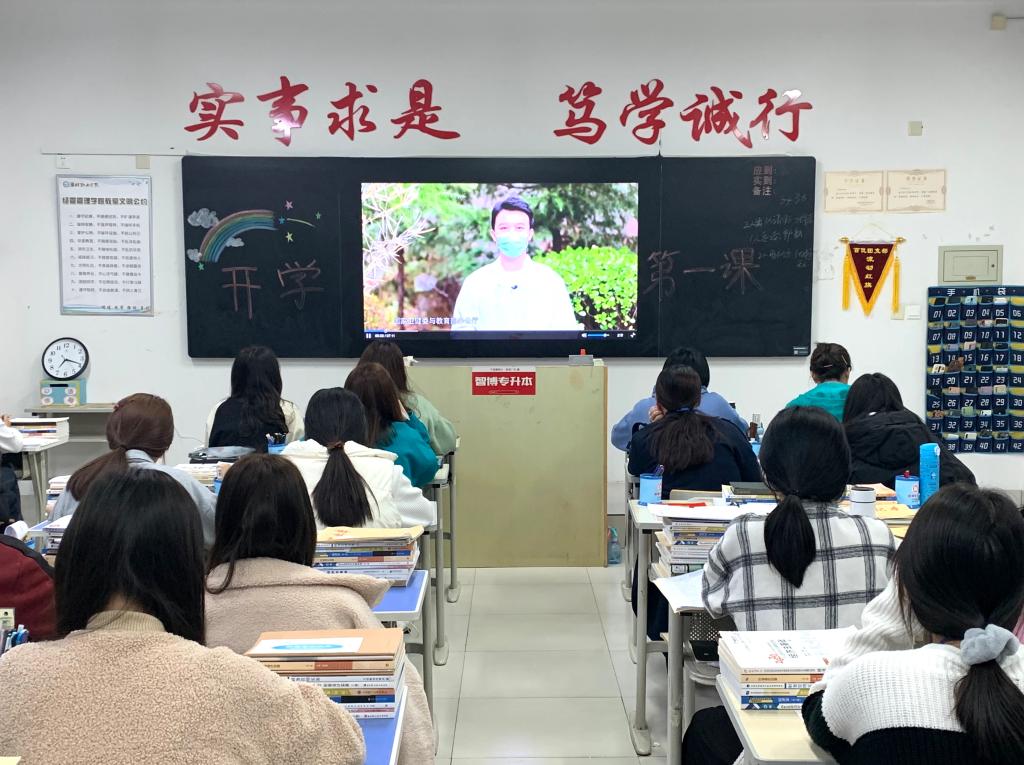 学院充分认识观看抗疫特别节目对学生思想引领的重要性,要求各班级加强组织领导,在《开学第一课•抗“疫”故事》特别节目播出后以照片形式统计收看情况。节目展播中,援鄂医疗队成员现场讲述抗疫经历,分享抗疫故事和疫情期间的感人经历与心得体会,科普疫情防控知识,展示了先进典型的担当精神、奉献精神。同学们在一个个战“疫”感人瞬间和不为人知的战“疫”故事中备受感动、反响热烈,纷纷表示要大力弘扬抗疫精神,向广大抗疫英雄学习,学习他们关爱生命、服务人民的崇高理想,学习他们勇于担当、甘于奉献的精神品质,学习他们团结一致、敢拼能胜的英勇气概。20级的赵文婷表示:他们脱下战衣,就是普普通通的人,但他们穿上战衣,就是我们最伟大的人!这次疫情教会了我们要珍爱生命,每个人的生命只有一次,我们要体会生命的美好,体会生命的价值。19级的刁小洹分享感悟:“最美逆行者担得住‘最美’二字,他们是国家的脊梁,是中华民族精神的化身,是当代青年精神高地的丰碑,值得我们每一位新时代大学生学习,用最专注认真的态度做好学生分内之事,在担当中历练、成长,让青春之花绽放在祖国最需要的地方!”
