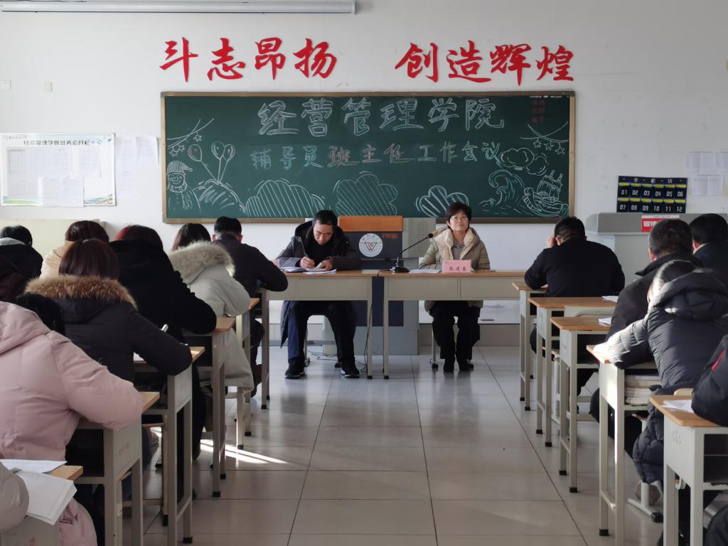 1月7日下午,经营管理学院在惠泽1号楼A312教室举行收官谋篇学团工作会议,安排部署学期末及寒假学生工作。会议由经营管理学院党总支负责同志主持,学院主要负责同志及全体班主任、辅导员参加了会议。