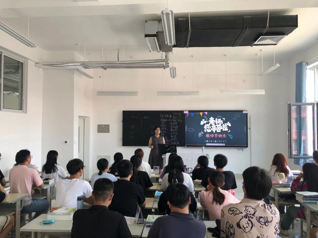 活动中,各班级组织开展了感念师恩主题班会、志愿服务、对老师提一条建议、编写一条祝福信息、养成一个尊师重道的好习惯等主题活动。主题班会上,各班级负责人讲述了教师节的来历及重要意义,通过观看相关影视作品发表感想、分享尊师重教的故事等形式,感受教师无私奉献的精神,表达对老师的感恩之情;同学们制作贺卡,学生把心中想说的话都倾注到笔尖,写成一份份祝福或三行情诗,从不同的角度热情讴歌了无私奉献、辛勤工作的老师们。各班级还组织学生为老师提供志愿服务、提出教学小建议、尊师爱师好习惯等活动,对全体学生进行了一次深刻的尊师教育,引导大学生常怀感恩之心,常践感恩之行。