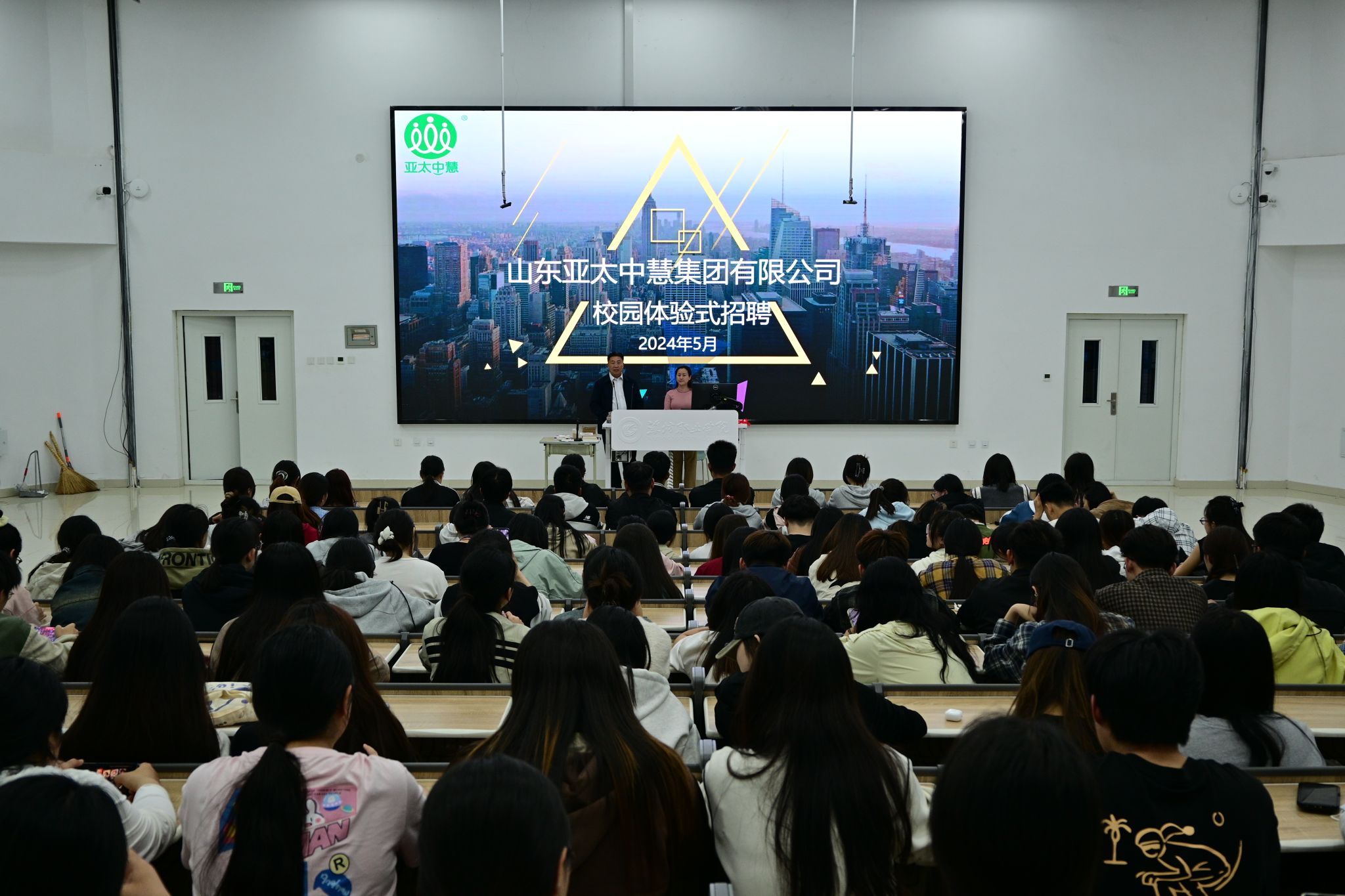 本次活动邀请山东亚太中慧集团有限公司进行招聘宣讲。山东亚太中慧集团有限公司成立于2004年,总部位于潍坊市,资产总额逾20亿元,员工8000余人,公司连续多年实现销售收入过百亿元。活动伊始,经营管理学院相关老师作招聘活动启动仪式动员,鼓励学生把握校招机遇,选择合适岗位,实现人生进阶。企业人力资源总监介绍了企业发展历程、企业文化、岗位设置、薪酬待遇、实习管理等。活动中,学院优秀校友结合自身在亚太中慧集团的职业成长轨迹,分享了职场适应技巧与职业规划经验。