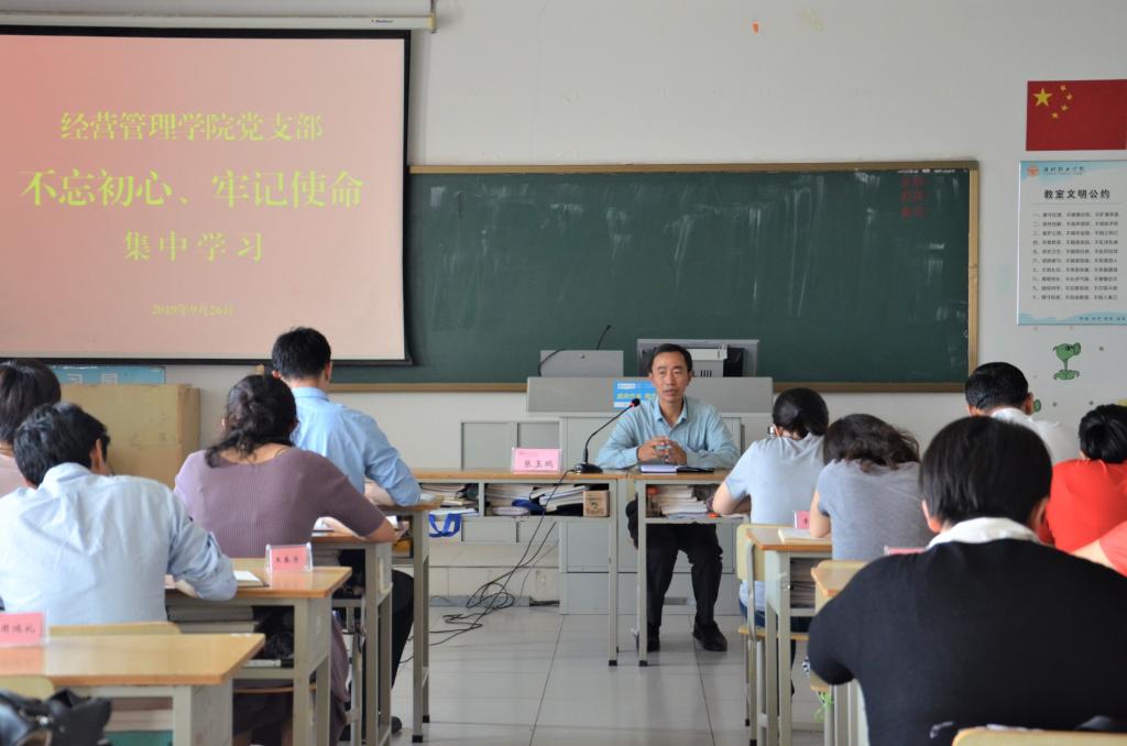 9月26日下午,经营管理学院在惠泽1-A312开展“不忘初心、牢记使命”集中学习。