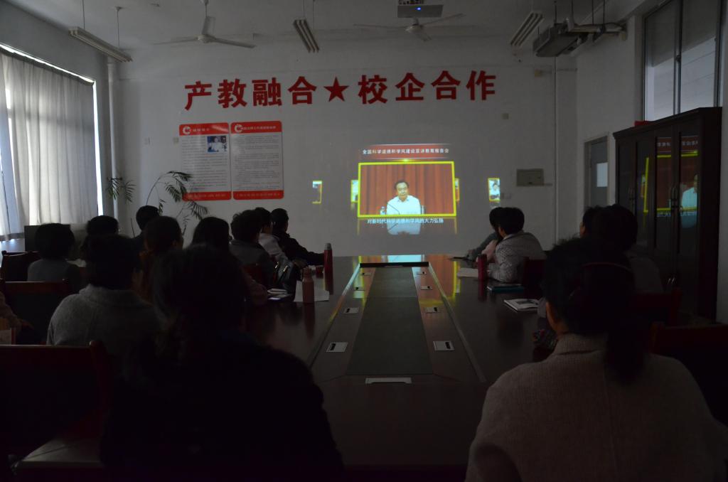 11月13日下午,经营管理学院组织无课教师、相关坐班人员在惠泽1号A303集中收看由全国科学道德和学风建设宣讲教育领导小组在人民大会堂举办的2019年全国科学道德和学风建设宣讲教育报告会。