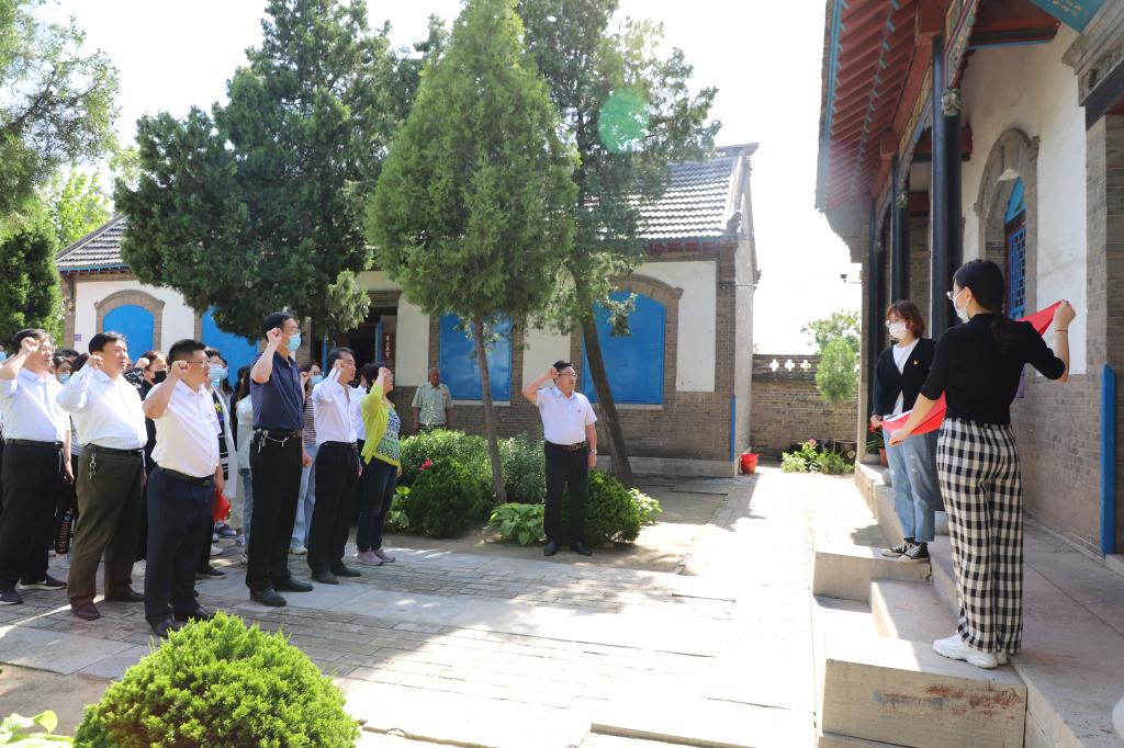 魏铁良为大家介绍了抗日战争纪念馆的历史,讲述了当年革命战争的激烈和残酷、军民抗战的艰辛以及革命前辈在抗战中表现出的英勇事迹。全体党员参观了纪念馆,沉痛缅怀抗日战争中牺牲的革命先烈。党员们怀着崇敬的心情,向革命先烈三鞠躬,表达对抗日烈士无限的敬仰和哀思。最后,全体党员列队,在鲜红的党旗下重温入党誓词。