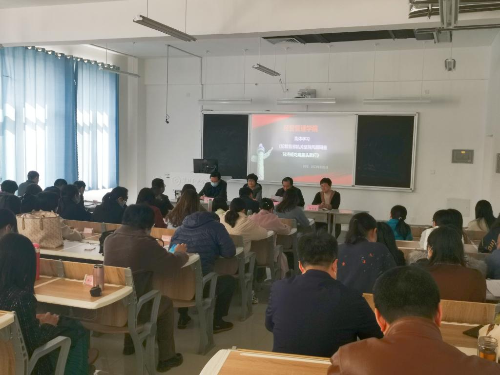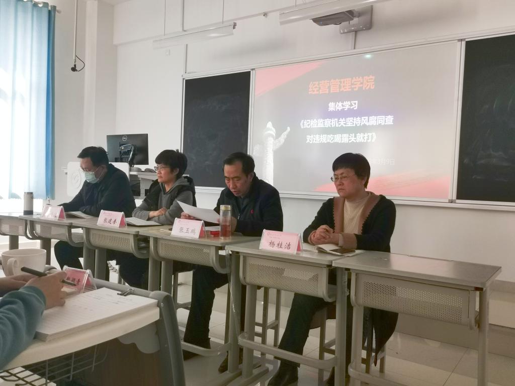 为严守法纪规矩,营造清廉守正、担当实干的氛围,强化违规吃喝问题的红线意识,经营管理学院党总支在智泽2号楼B312开展专题学习活动,由经营管理学院党总支负责人主持,全体党员参加。
