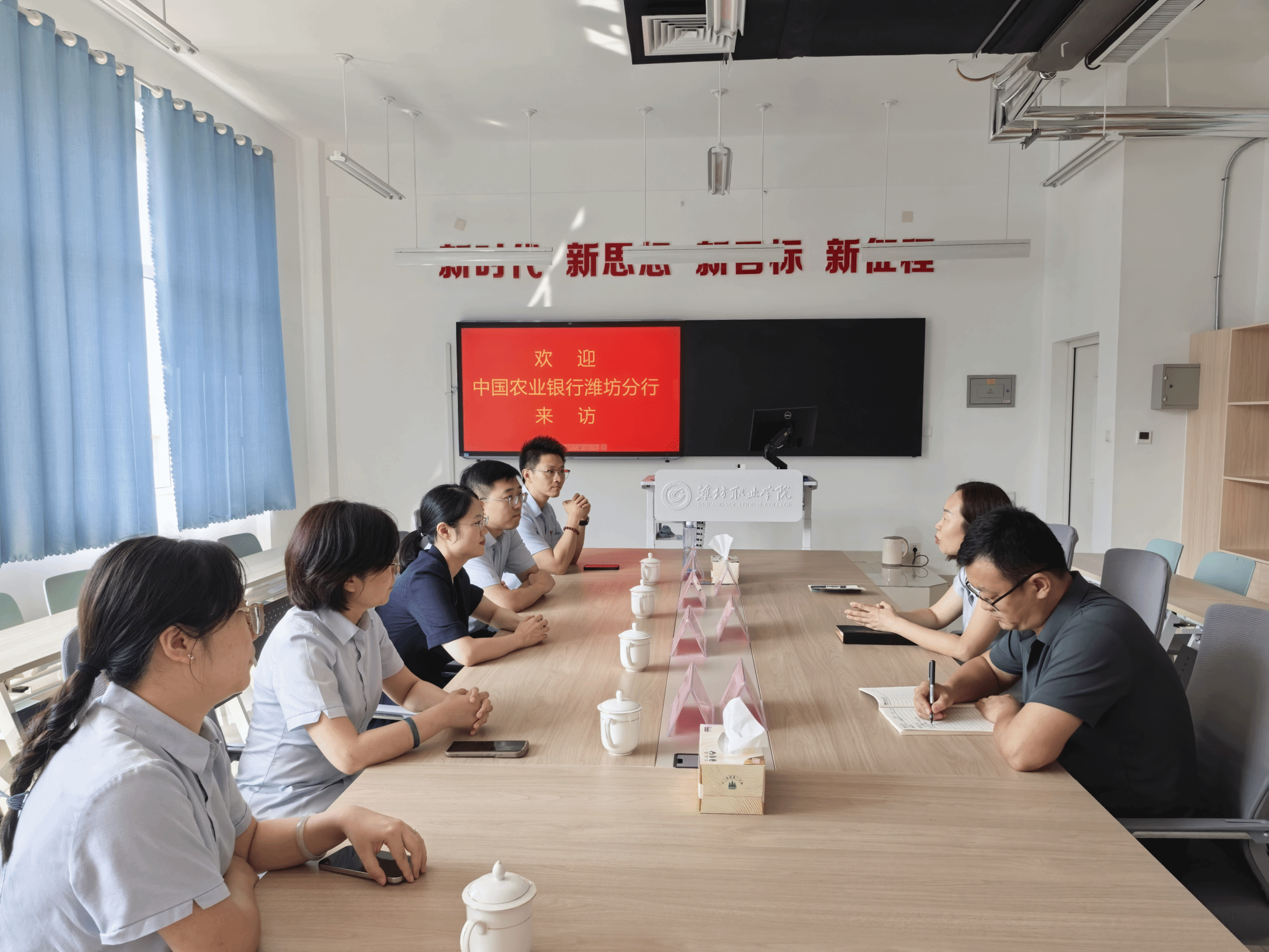 9月9日,中国农业银行潍坊分行机构业务部总经理周璇等一行5人来经营管理学院考察交流,学院主要负责同志热情接待并主持座谈会。